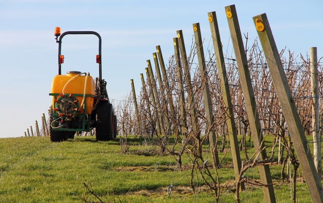 5 maart 2013, blauwe lucht. 18 graden op de wijngaard.