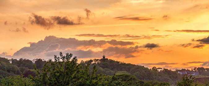 Maar gaandeweg werd het steeds beter. Zie deze mooie avondlucht met de contouren van de Wilhelminatoren en het casino van Valkenburg.